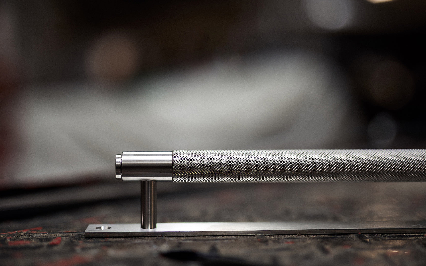 made from solid black anodised metal. This T-bar features our signature, diamond-cut, cross knurl pattern and is refined by hand.